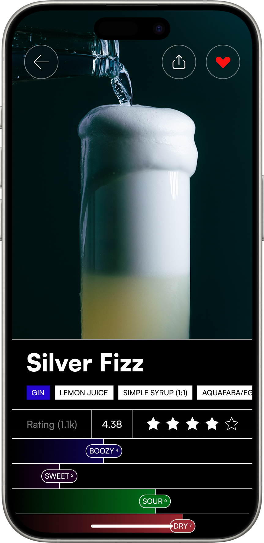 Found a cocktail you love? Click the heart icon to save it to your Favorites List! Easily access your favorite recipes, build your personal collection, and impress your friends with your mixology skills.